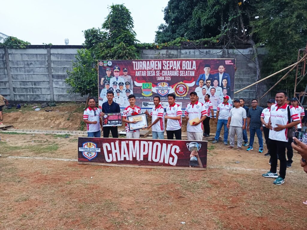 “Penyerahan piala dan penghargaan kepada para juara Turnamen Sepakbola Antar Desa se-Kecamatan Cikarang Selatan Cup Season 2 Tahun 2025”