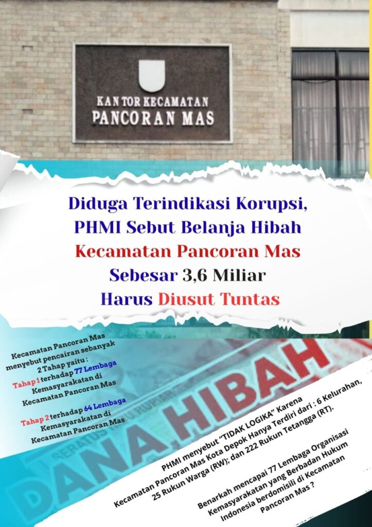 Diduga Terindikasi Korupsi, PHMI Sebut Belanja Hibah Kecamatan Pancoran Mas Sebesar 3,6 Miliar Harus Diusut Tuntas