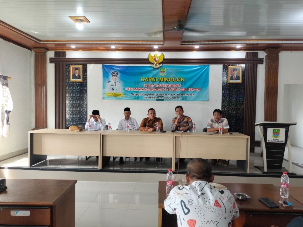 Rapat Minggon ini merupakan kegiatan rutin yang dilaksanakan untuk meningkatkan koordinasi dan sinergi antara aparat pemerintahan, TNI-Polri, dan masyarakat, dalam rangka menjaga stabilitas keamanan dan ketertiban di Desa Tanjung Baru khususnya, serta Kecamatan Cikarang Timur pada umumnya.
