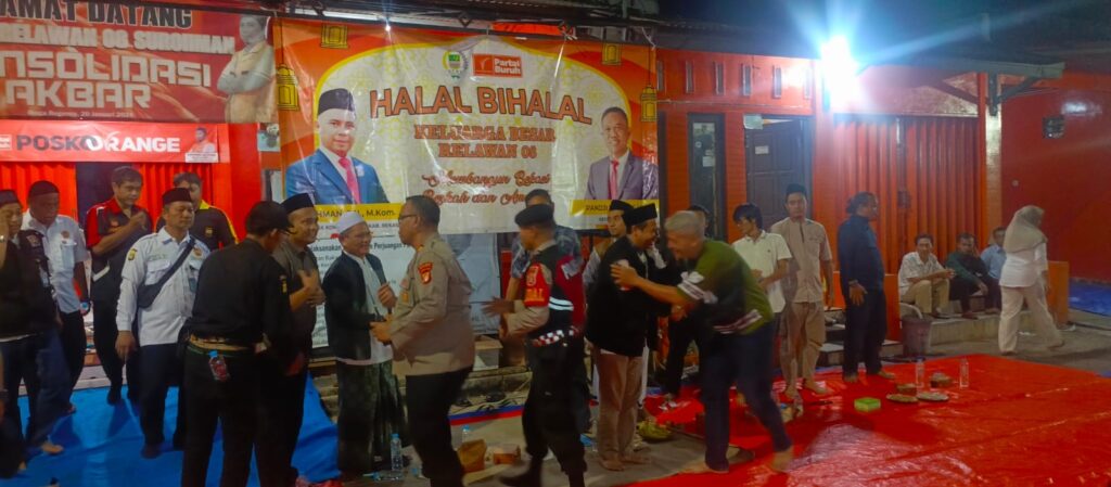 Kabupaten Bekasi – Kapolsek Serang Baru AKP Hotma P. Sitompul bersama jajaran menghadiri kegiatan halal bihalal di kediaman Anggota DPRD Kabupaten Bekasi Fraksi Partai Buruh, Surohman, S.H., M.Kom, pada Sabtu (18/4/2026) malam. Acara tersebut berlangsung di Perum Mega Regency Blok D Gor RW 15, Desa Sukaragam, Kecamatan Serang Baru.
