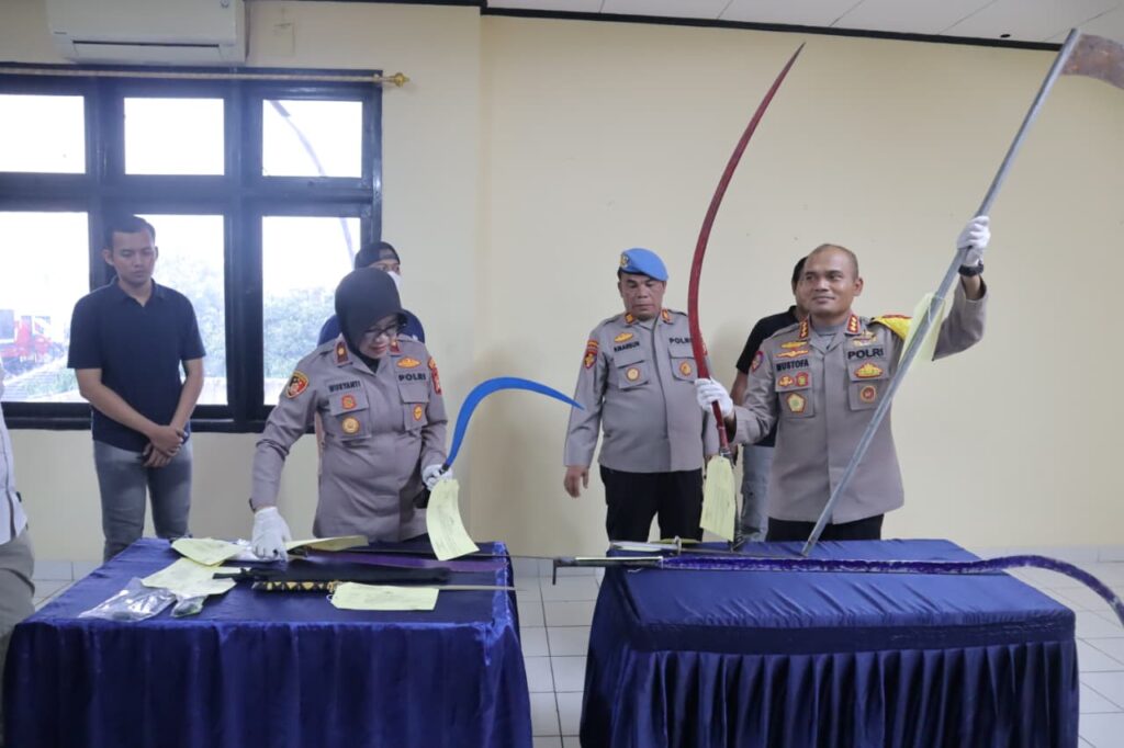 Dari lokasi, polisi juga menemukan tiga bilah senjata tajam tambahan—dua corbek dan satu samurai yang diduga milik rekan M.J. yang berhasil melarikan diri. M.J. kemudian ditetapkan sebagai Anak Berhadapan dengan Hukum (ABH), sementara 13 remaja lain yang turut diamankan hanya dikenakan pembinaan dan diserahkan kembali kepada orang tua mereka.