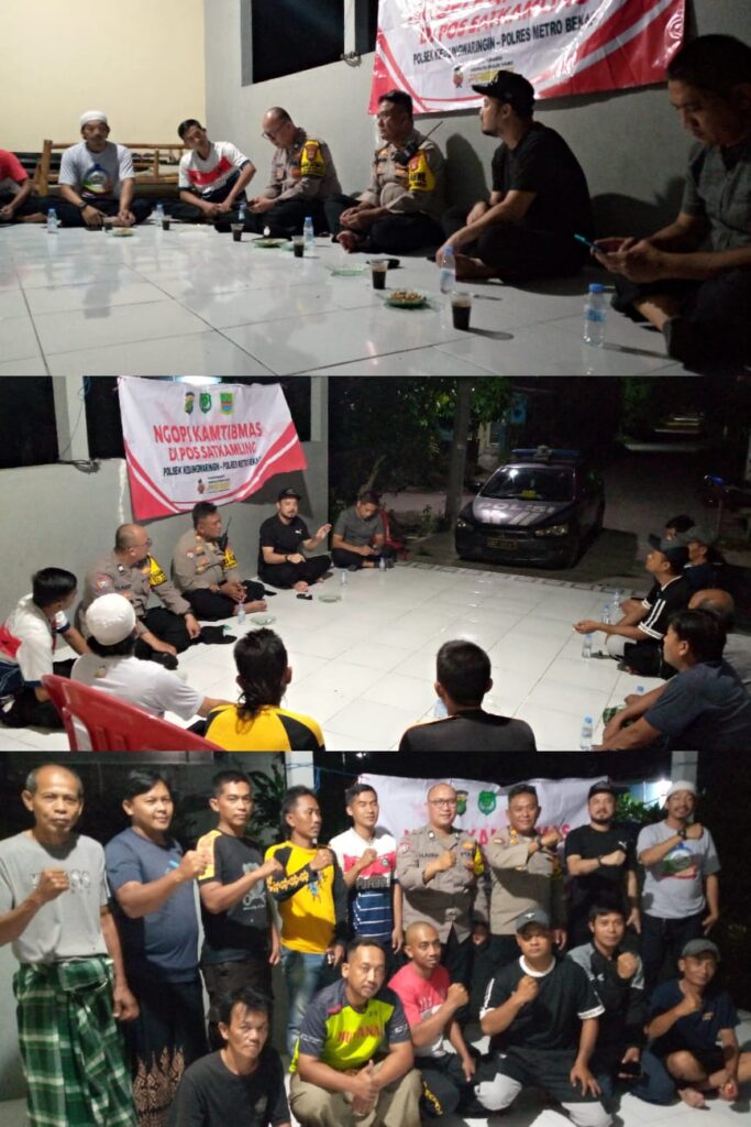 Kapolsek Kedungwaringin AKP Muhammad Trisno SH MM Ngopi Kamtibmas di Pos Satkamling Gang kerinci Perum BWI 2 Blok D Rt.04/07, Wilayah hukum Polsek Kedungwaringin Polres Metro Bekasi, sekitar 21.30 WIB.