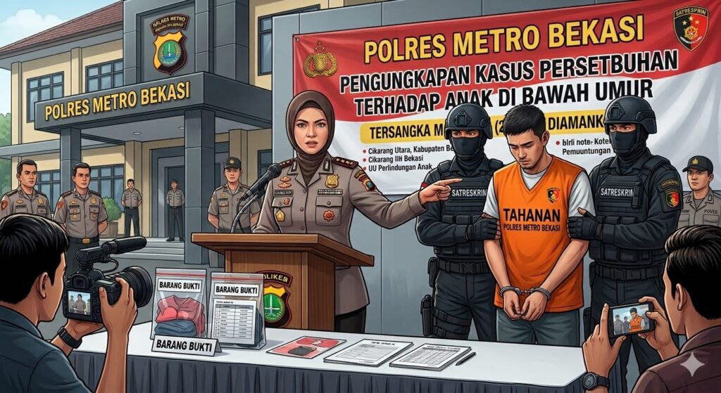 Kabupaten Bekasi – Satuan Reserse Kriminal Polres Metro Bekasi berhasil mengungkap kasus tindak pidana persetubuhan terhadap anak di bawah umur yang terjadi di wilayah Cikarang Utara, Kabupaten Bekasi.
