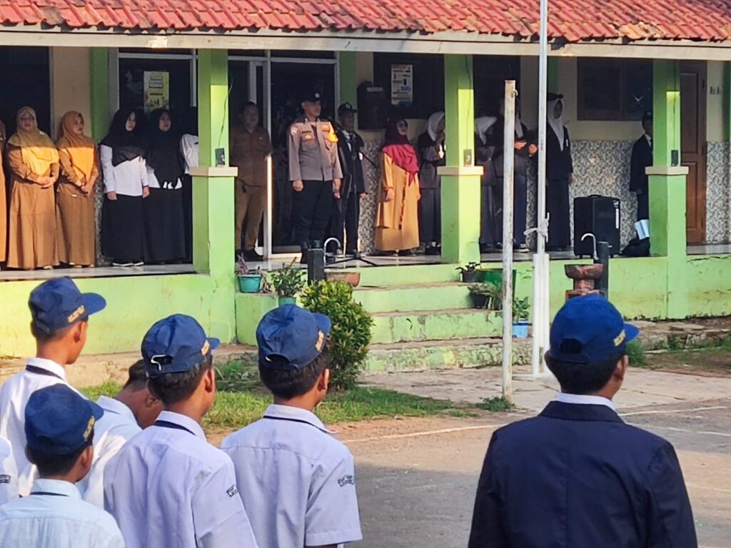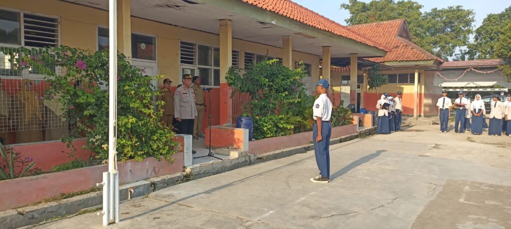 “Bhabinkamtibmas Polsek Cikarang Timur menjadi pembina upacara dalam kegiatan “Polisi Go to School” di SMPN wilayah Cikarang Timur, Senin (6/10/2025).”