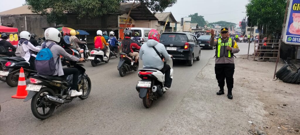 Polsek Serang Baru Gelar Gatur Lalin Pagi, Arus Kendaraan di Sejumlah Titik Berjalan Lancar