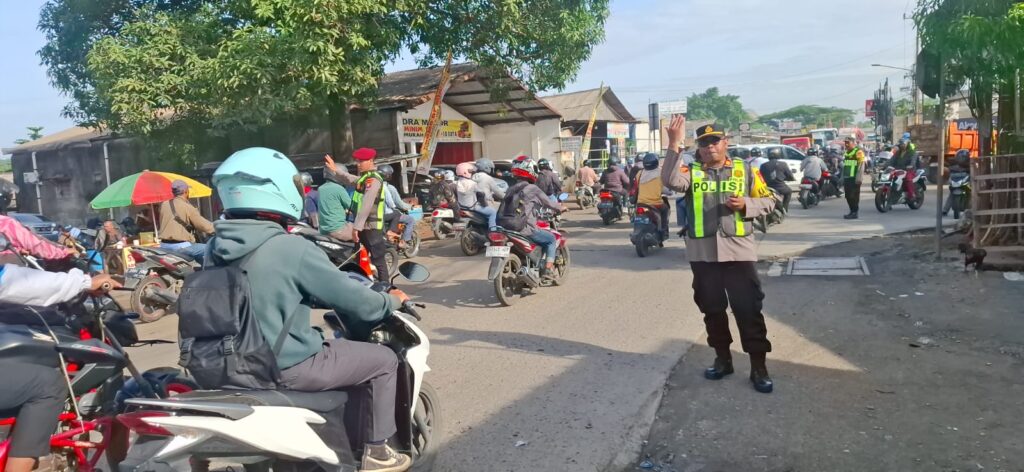Polsek Serang Baru Pastikan Arus Pagi Lancar, Kapolsek Pimpin Pengaturan Lalu Lintas
